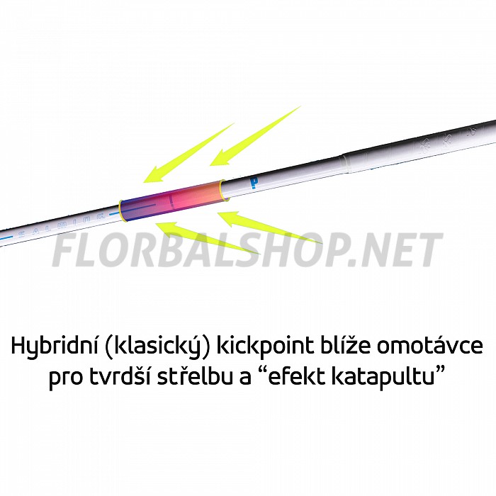 - hybridní (klasický) kickpoint blíže omotávce pro tvrdší střelbu a "efekt katapultu"